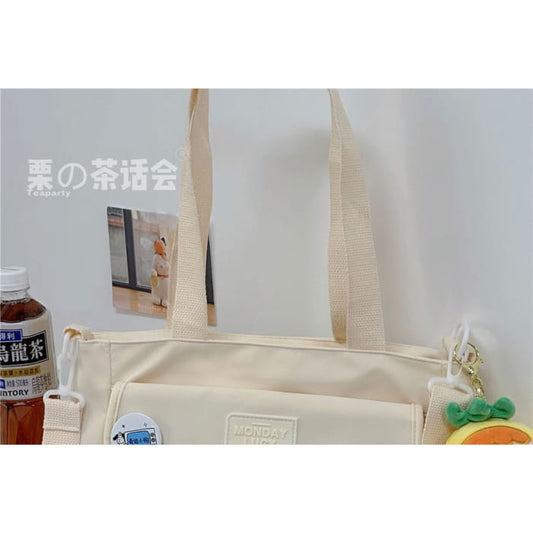Plain Lettering Label Crossbody Bag / Charm / Set