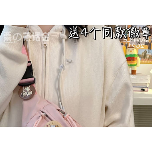 Cat Embroidered Multi-Pocket Backpack / Bag Charm / Set