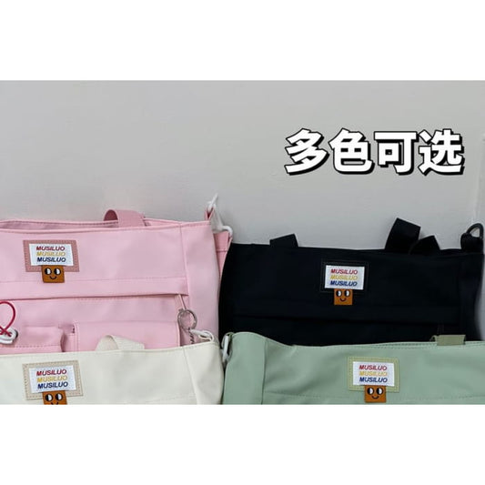 Lettering Applique Drawstring Tote Bag / Bag Charm / Coin Purse / Set