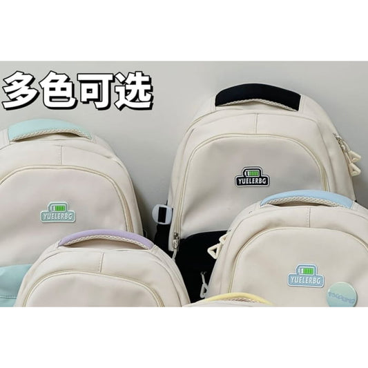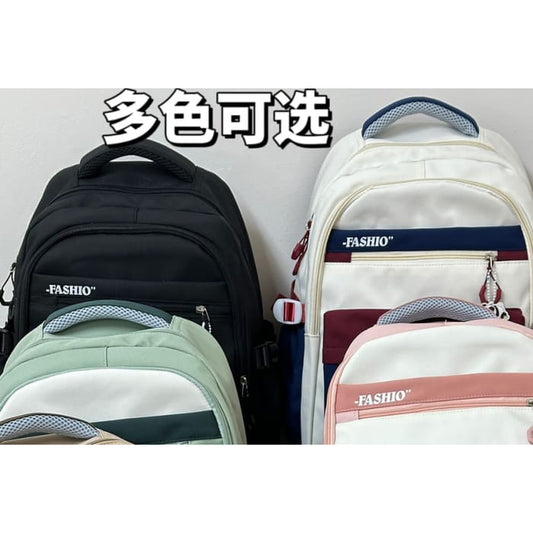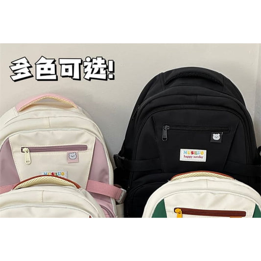 Color Block Multi-Pocket Backpack / Coin Purse / Bag Charm / Set