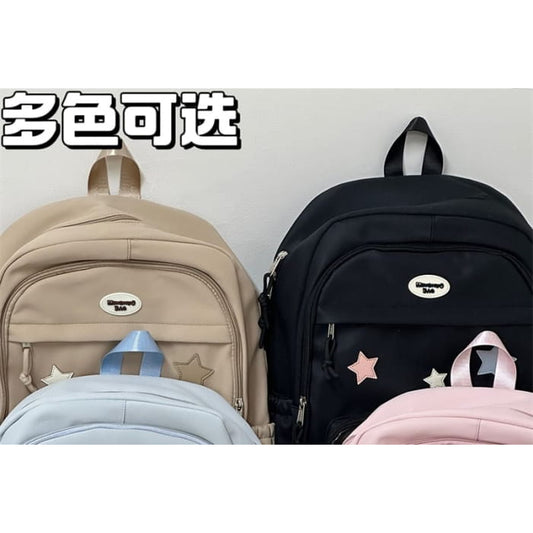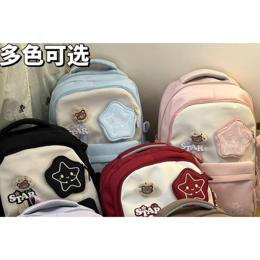 Lettering Star Embroidered Multi-Pocket Backpack / Bag Charm / Set