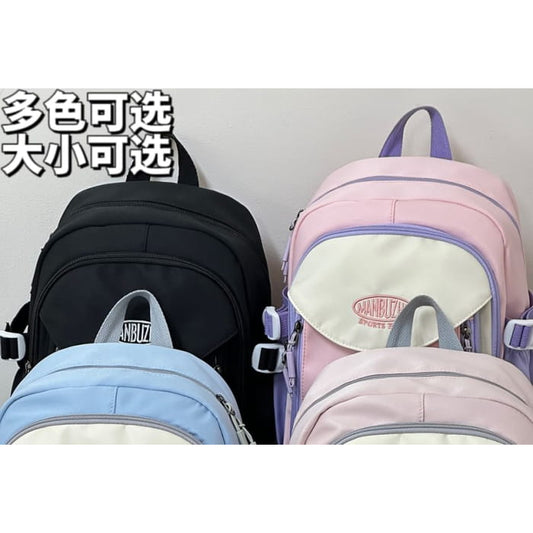 Lettering Applique Multi-Pocket Backpack / Coin Purse / Bag Charm / Set