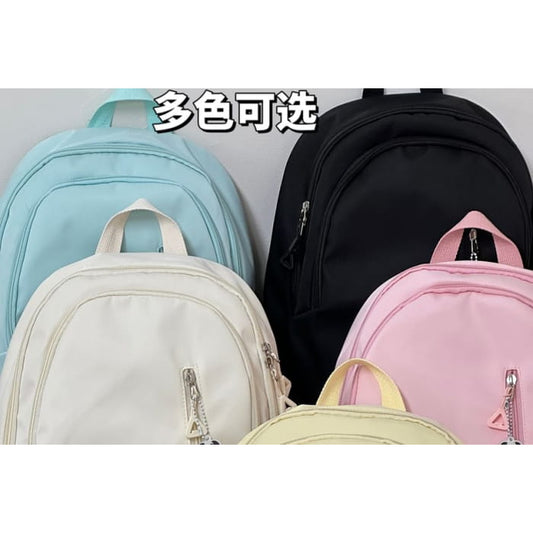 Lettering Multi-Pocket Backpack / Bag Charm / Coin Purse / Set