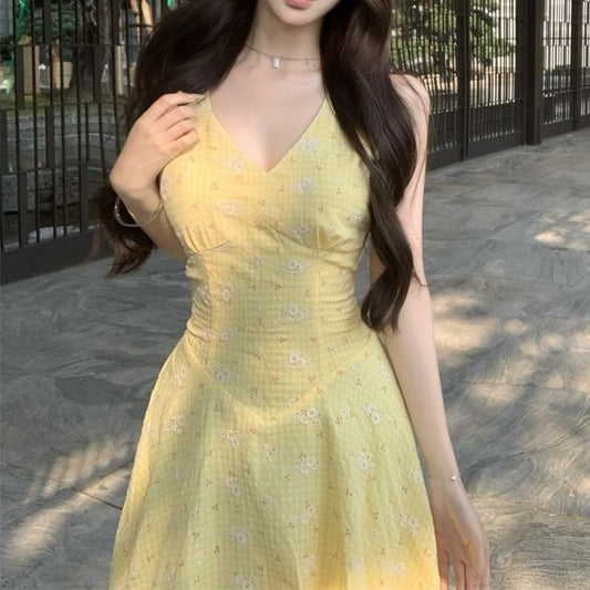 Dress Floral Strap Open Plain Print Spaghetti Front Cardigan Square / Mini Crop A-Line Neck