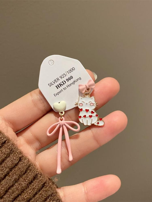 Earring Bear Pearl Faux Rhinestone Clip-On