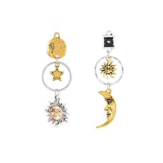 Clip-On / Sun Moon Asymmetrical Drop Earring