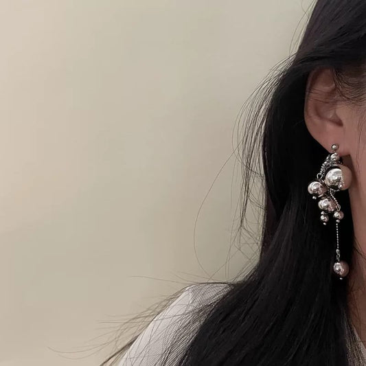 Irregular Clip-On Earring / Drop Hoop Hook Beaded