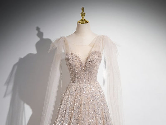 Sequin Evening Gown Long-Sleeve / Mesh Dress A-Line