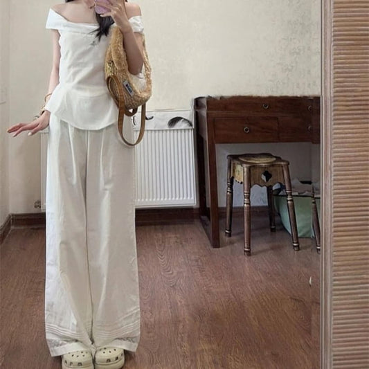 Plain Cardigan / Scoop Neck Cami Top / Drawstring Waist Wide Leg Pants