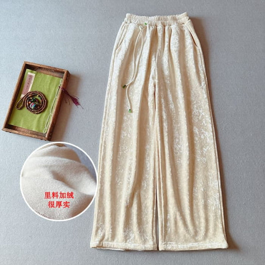 Drawstring Waist Dotted Jacquard Wide Leg Pants