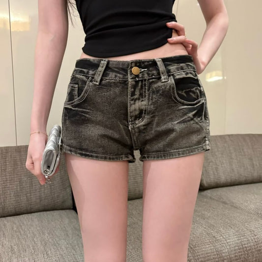 Denim Hot Hem Pants Low Rise Washed Roll Up