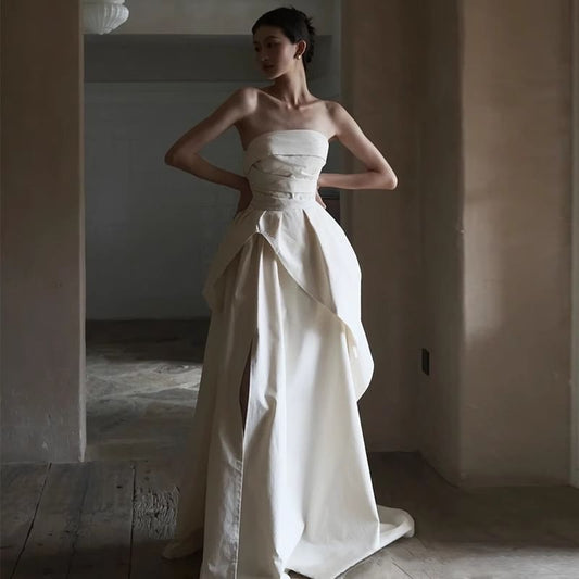 Plain Wedding Ruched Gown A-Line Tube Slit Panel