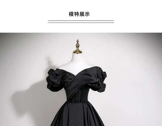 Plain A-Line Evening Off Shoulder Gown Gathered