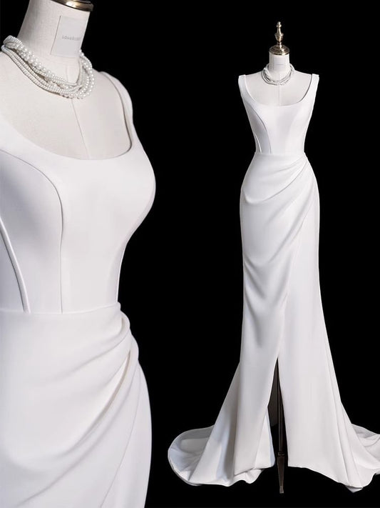 Sleeveless Plain Backless Mermaid Wedding Gown