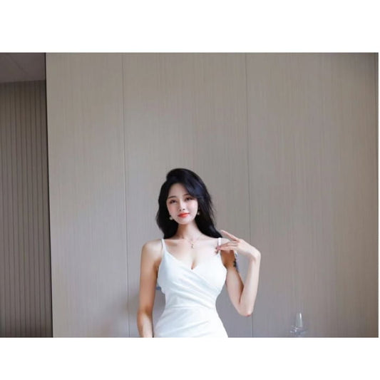 Spaghetti-Strap Plain Side Slit Dress