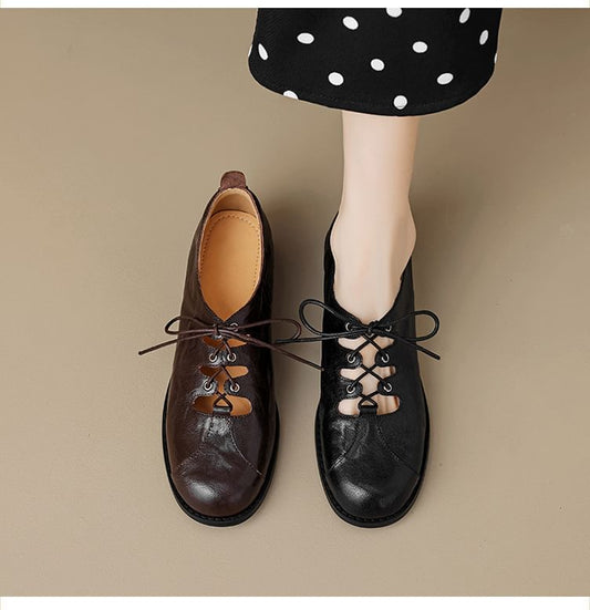 Cutout Lace-Up Faux Shoes Leather Oxford