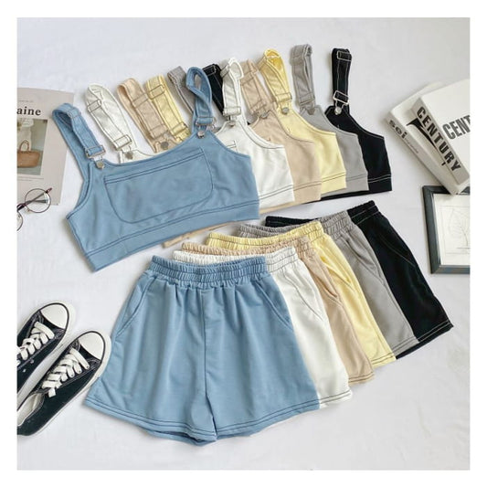Set: Plain Crop Tank Top + Shorts