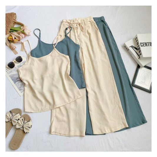 Set: Plain Camisole Top + High Waist Wide Leg Pants