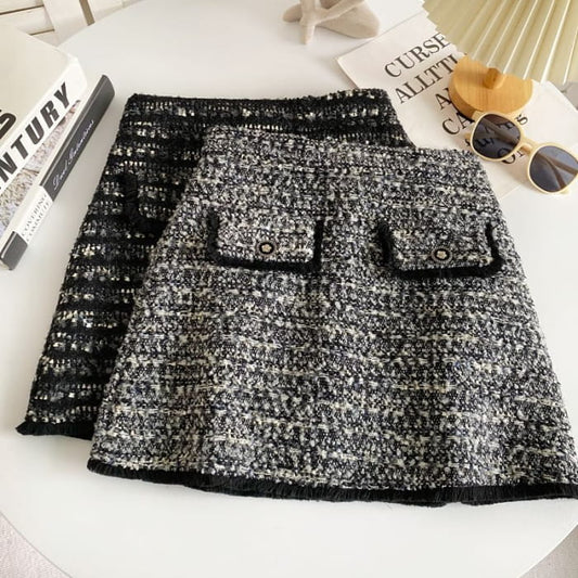 Long Sleeve Ruffled Collar Tweed Mock Two-Piece Dress