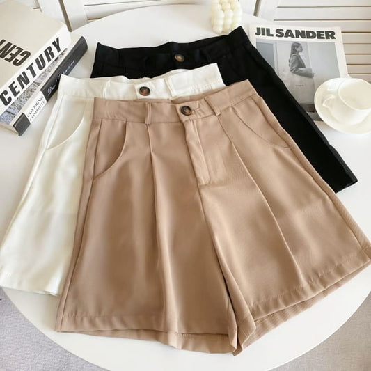 Short-Sleeve Collared Plain Mini Shirt Dress