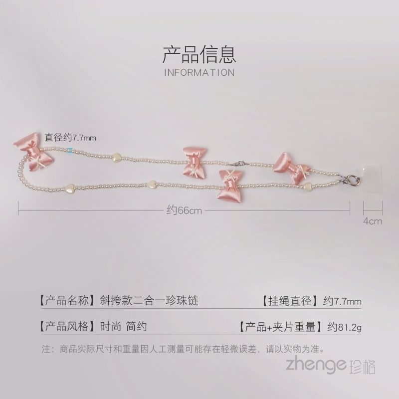 Bow Faux Pearl Phone Lanyard with Lanyard Pad