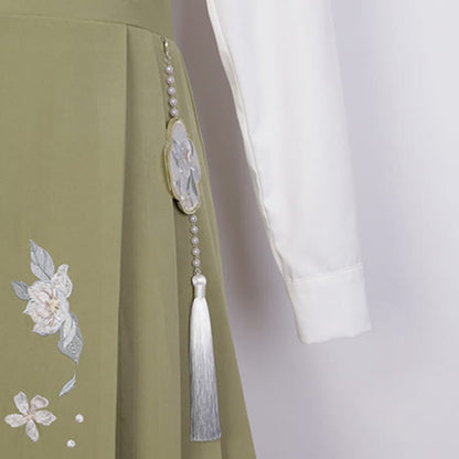 Indulge in elegance with our Buckle Floral Embroidery Green Dress Set. This set features a beautifully detailed floral embroidery and a stylish buckle for a touch of sophistication. Perfect for any occasion, this dress set will make you stand out in style.