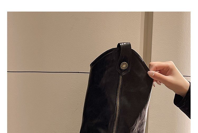Platform Buckled Panel Zip Knee High Boots