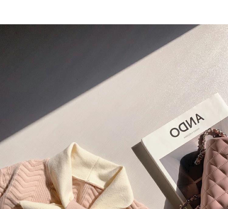 Puff-Sleeve Tie-Neck Plain Button-Up Midi Knit Dress