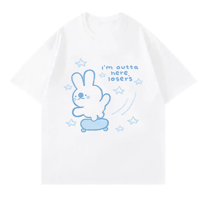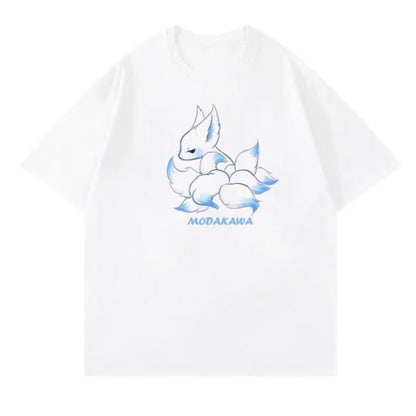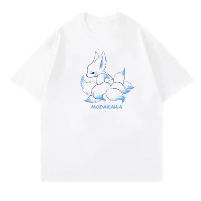 Cartoon Fox Letter Print T-Shirt Blue Pantskirt