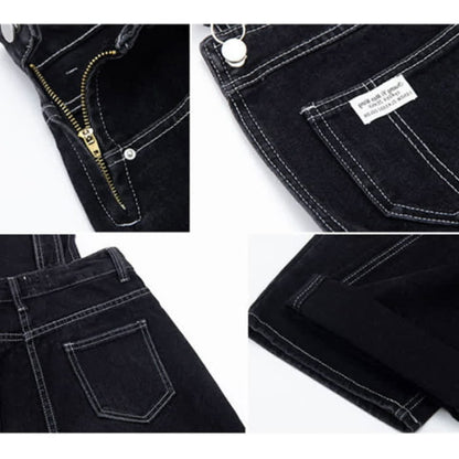 Casual Pocket Lapel Tie T-Shirt Denim Overalls Set