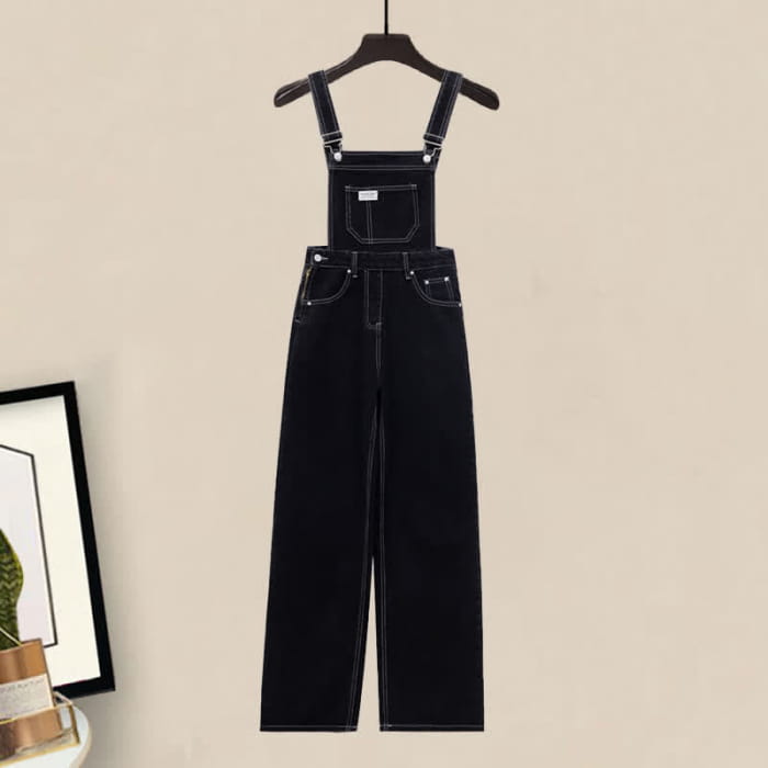 Elevate your casual style with this elegant pocket lapel tie t-shirt and denim overalls set. Perfect for effortless and stylish looks, featuring convenient pockets and a tie at the waist for a flattering fit. Upgrade your wardrobe with this versatile, statement-making outfit.