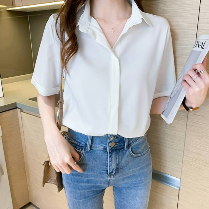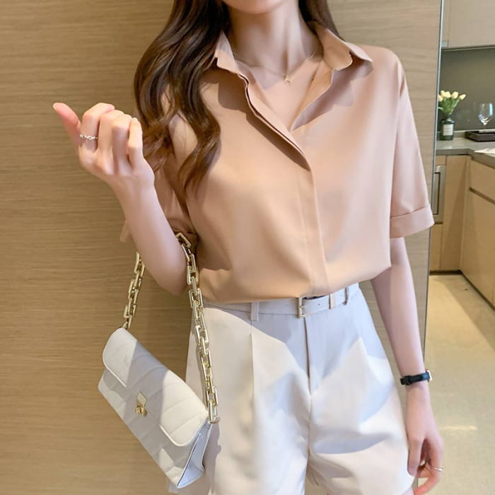 Upgrade your casual look with our elegant Casual Polo Collar Cuffed Sleeve Shirt. This shirt features a comfortable polo collar and cuffed sleeves, adding a touch of sophistication to your everyday style. Made with high-quality materials, this shirt will provide both style and comfort.