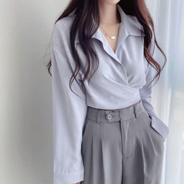 Chic Pure Color Lapel Crop Shirt