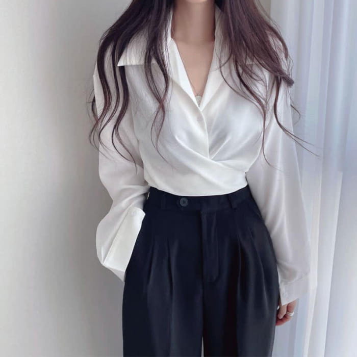 Elevate your style with our Chic Pure Color Lapel Crop Shirt. The elegant lapel design adds a touch of sophistication, while the cropped length adds a modern twist. Made from high-quality fabric, this shirt is both chic and comfortable. Perfect for any occasion, it's a must-have addition to your wardrobe.