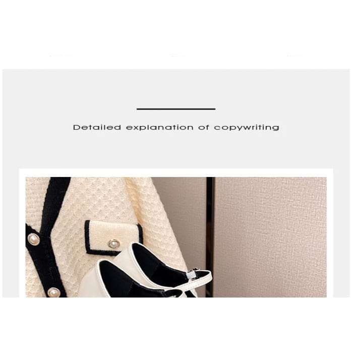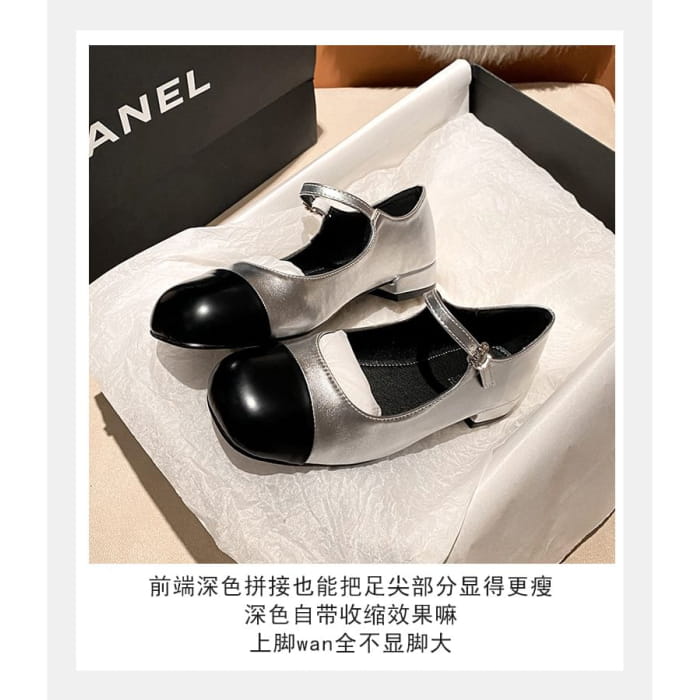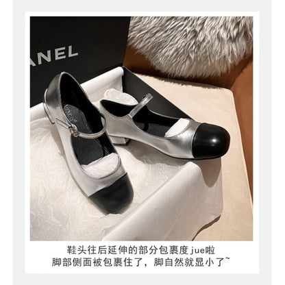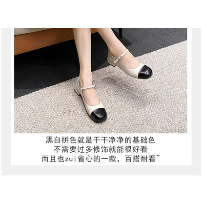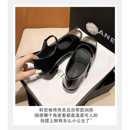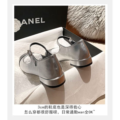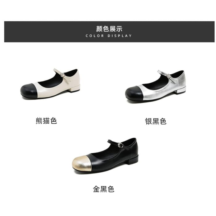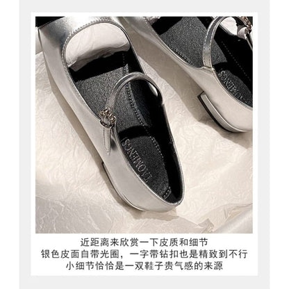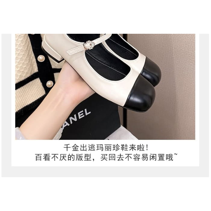 Chunky Heel Cap Toe Rhinestone Buckled Faux Leather Mary Jane Shoes