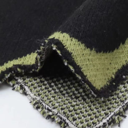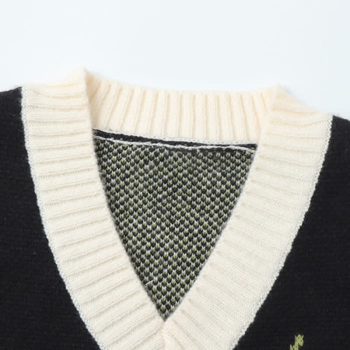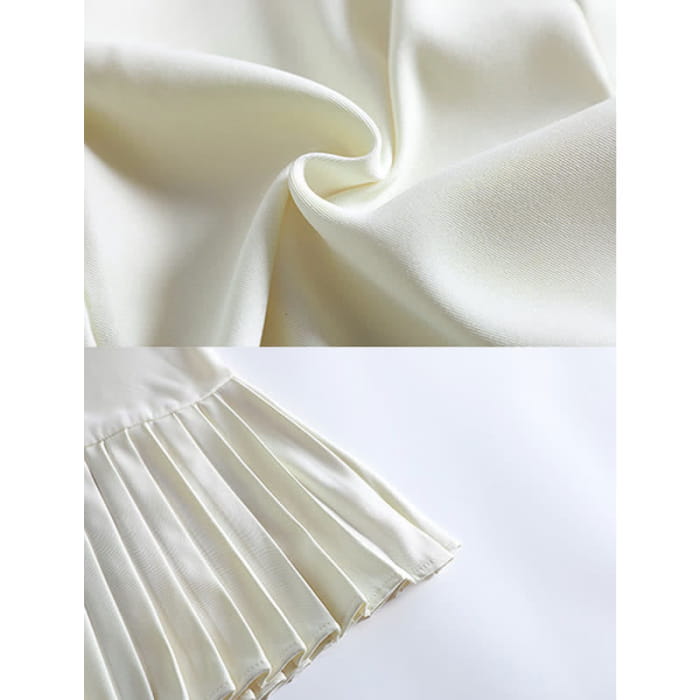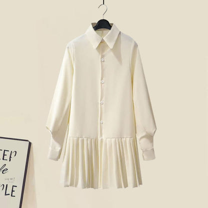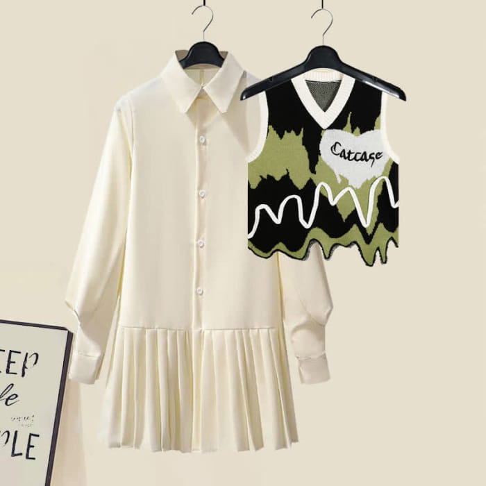 Colorblock V-neck Knit Vest Lapel Pleated Shirt Dress