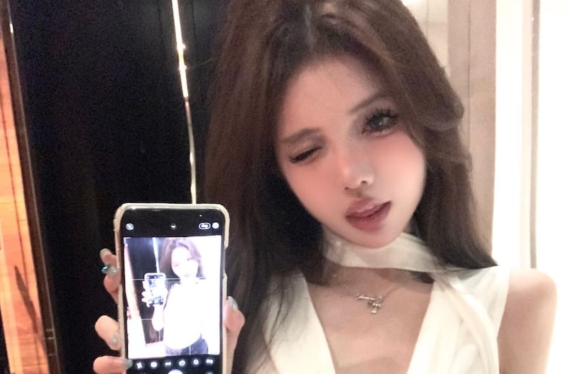 Choker-Neck Lettering Cowl Neck Crop Tank Top
