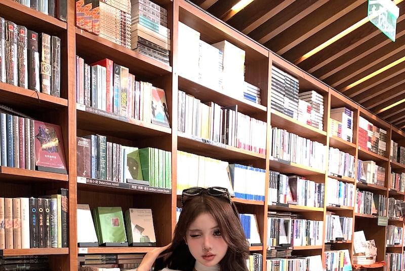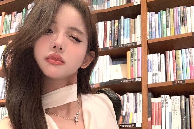 Cowl Crop Tank Top Choker-Neck Lettering Neck