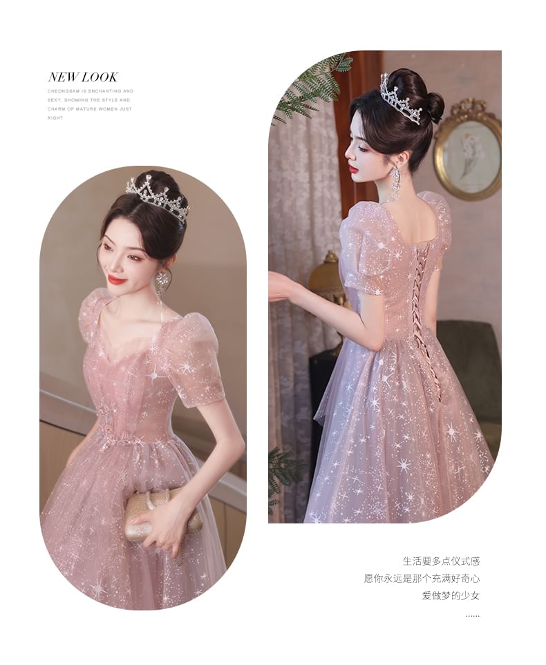 Dress Short-Sleeve Cocktail Sequin A-Line Mesh Midi