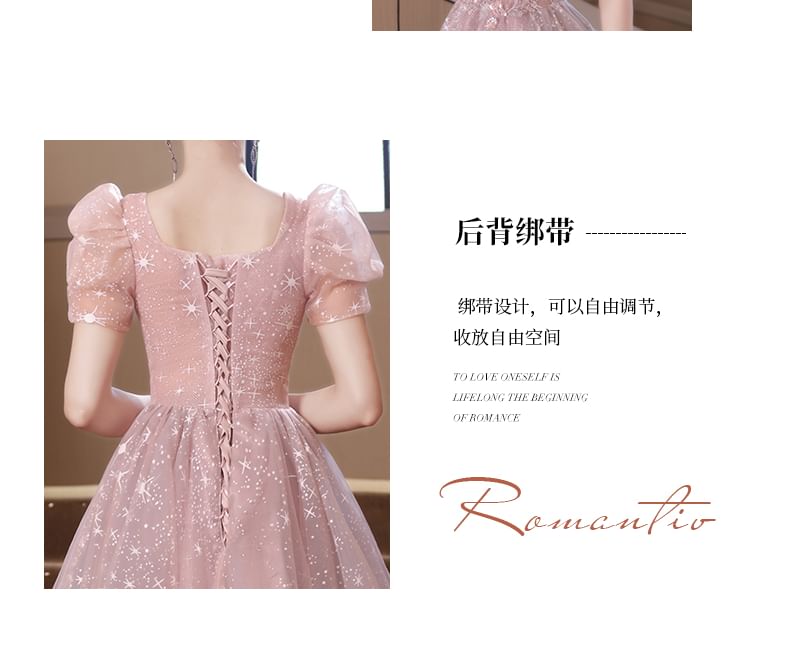 Short-Sleeve Sequin Mesh Midi A-Line Cocktail Dress