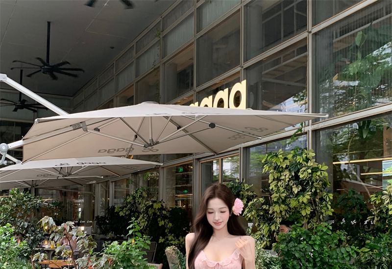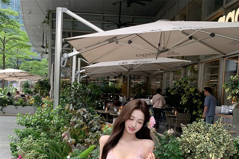 Spaghetti Strap Floral Print Bow Ruffle Maxi Sheath Dress