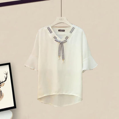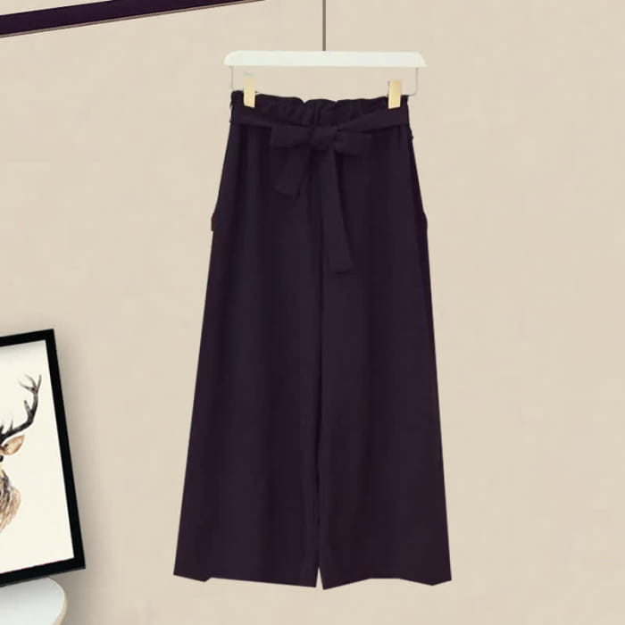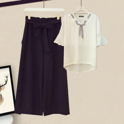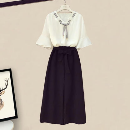 Elegant Bowknot Chiffon T-Shirt Lace Up Wide Leg Pants