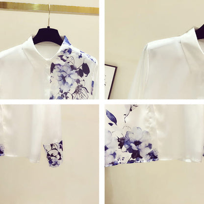 Indulge in elegance with our Elegant Flowers Print Long Sleeve Shirt. The intricate floral design on the long sleeves adds a touch of sophistication to your look. Made with high-quality fabric, this shirt is perfect for any occasion. Elevate your style with this timeless piece.