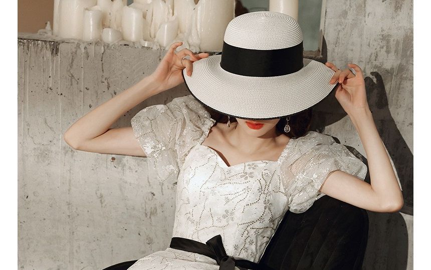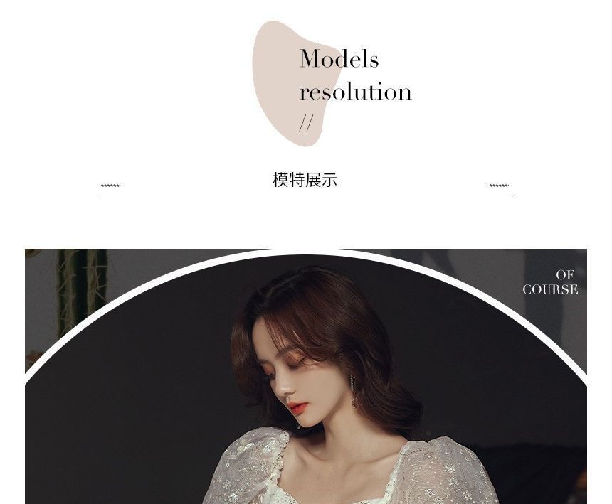 Floral Evening Gown Bow A-Line Puff-Sleeve Accent