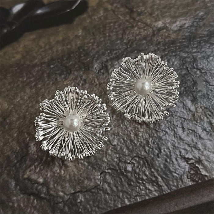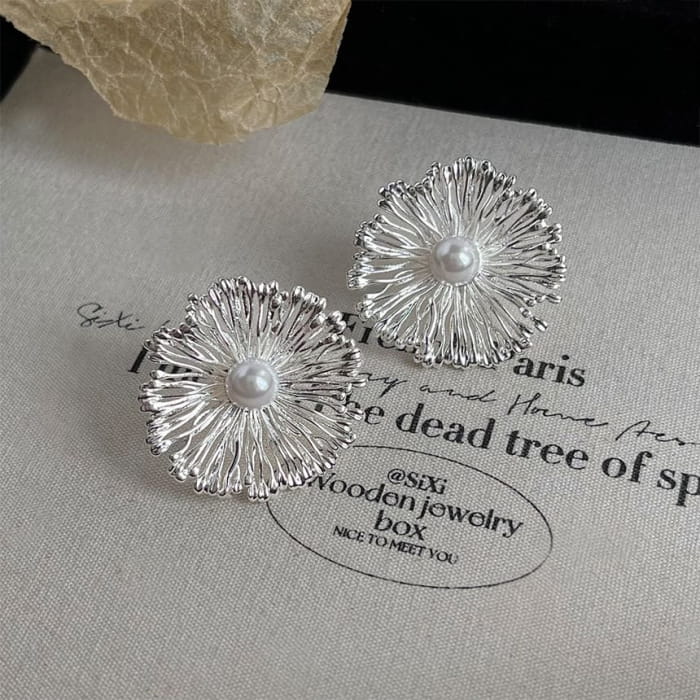 Floral Faux Pearl Alloy Stud Earring