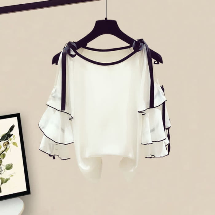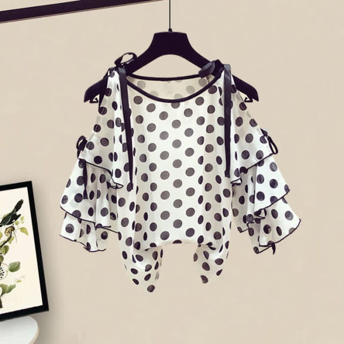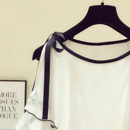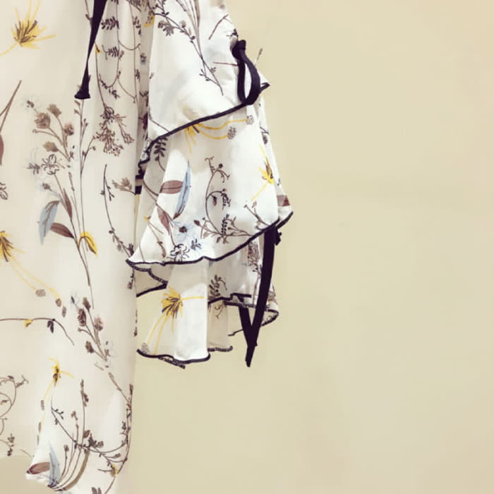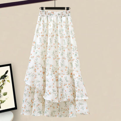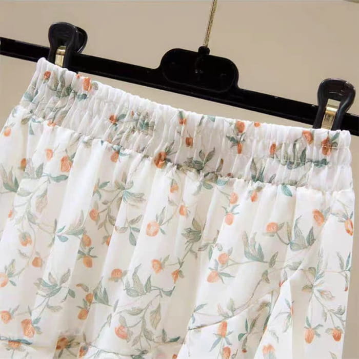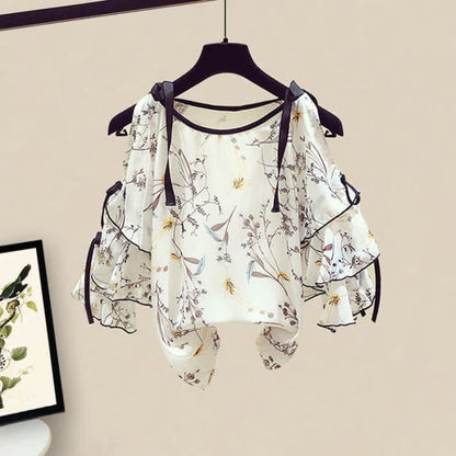 Floral Print Shoulder Chiffon Shirt Flowers Skirt