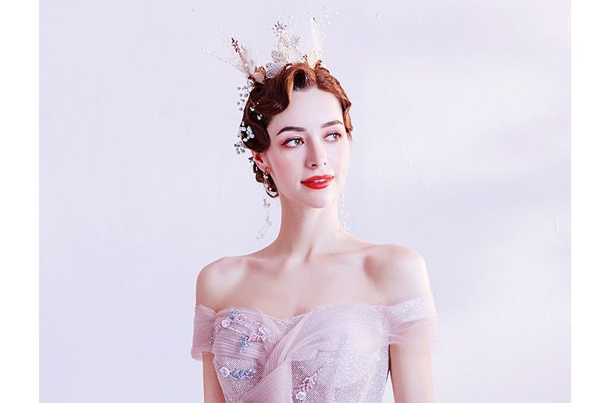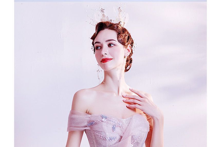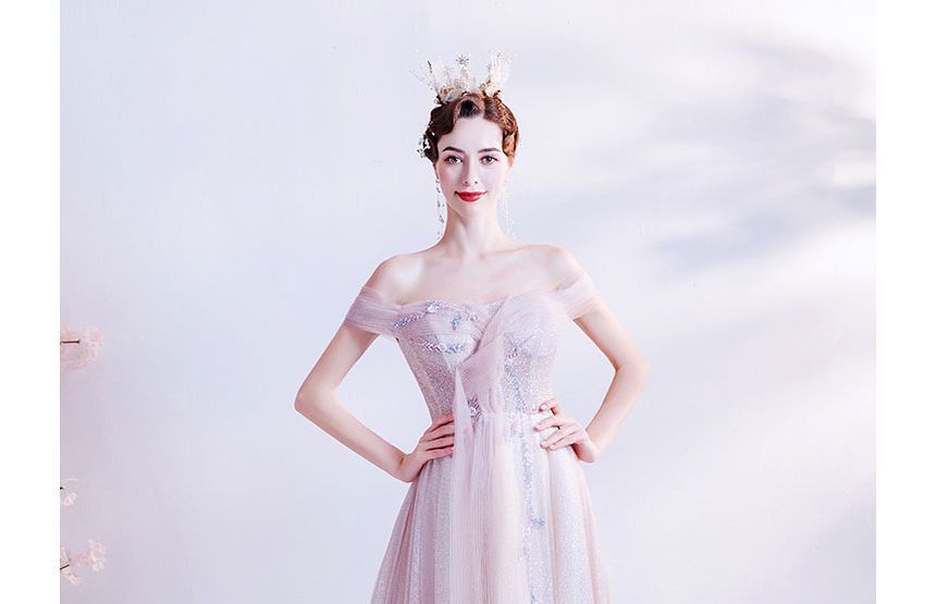 Gown Evening A-Line Floral Off-Shoulder Glitter