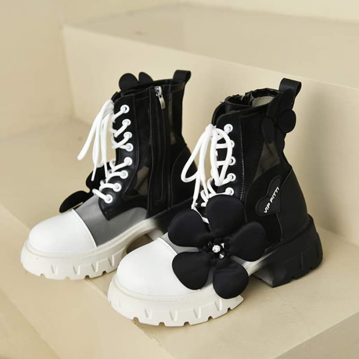 These exquisite Gradient Color Floral Mesh Platform Boots are not just a fashionable accessory, they are a statement piece. Their unique design, featuring a gradient color floral mesh and a platform heel, will elevate any outfit. Comfort and style combined, these boots are a must-have for any elegant wardrobe.