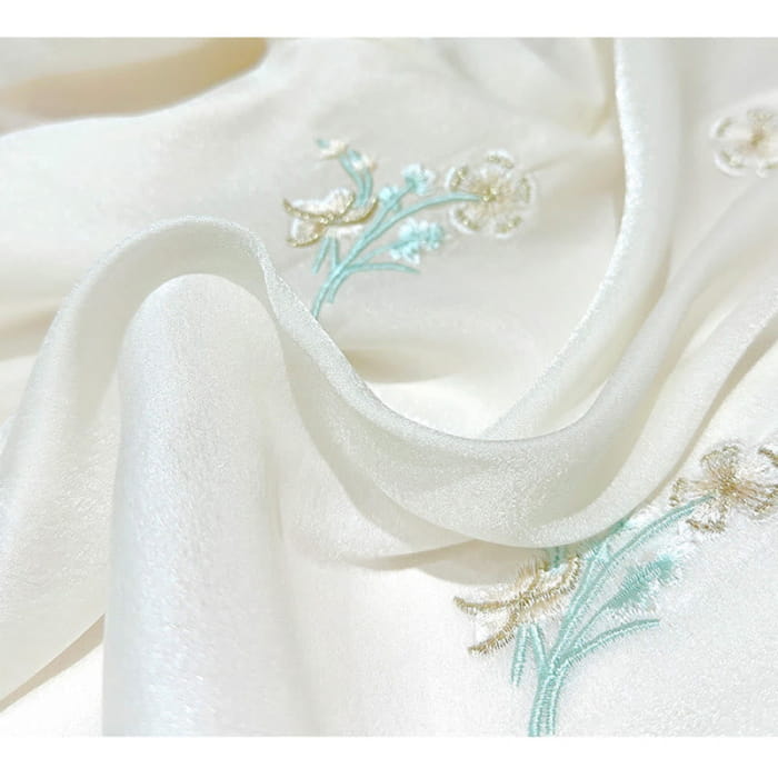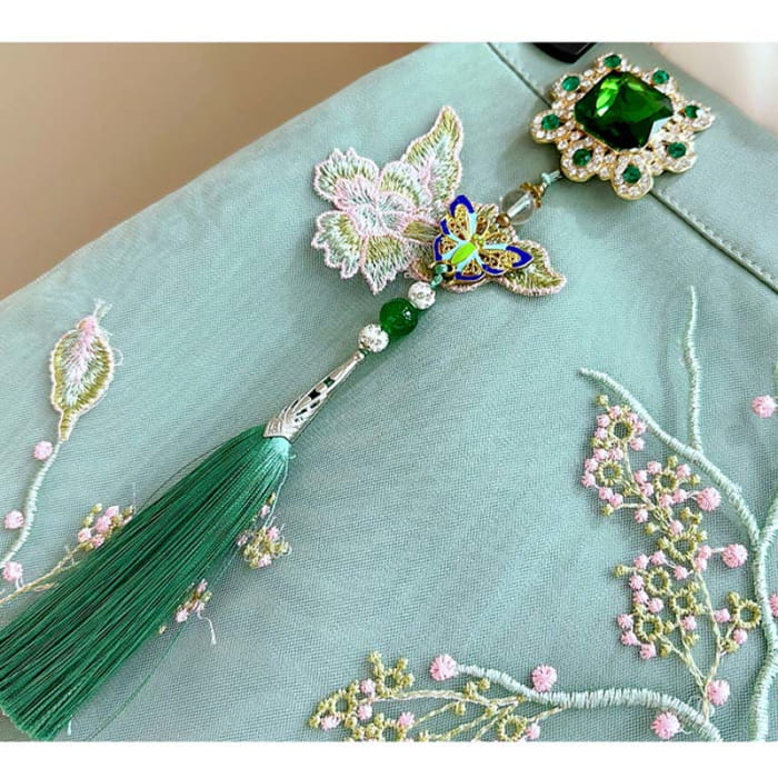 Green Floral Embroidery Shirt Skirt Set