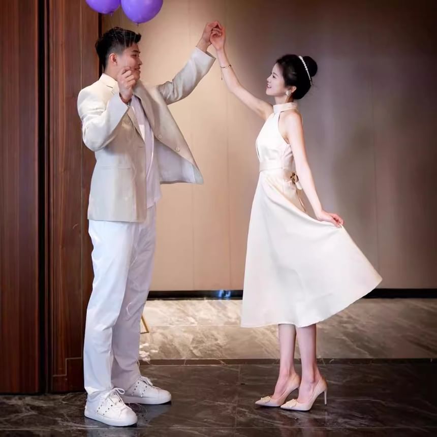 Halter Mock Neck Plain Cutout Midi A-Line Cocktail Dress